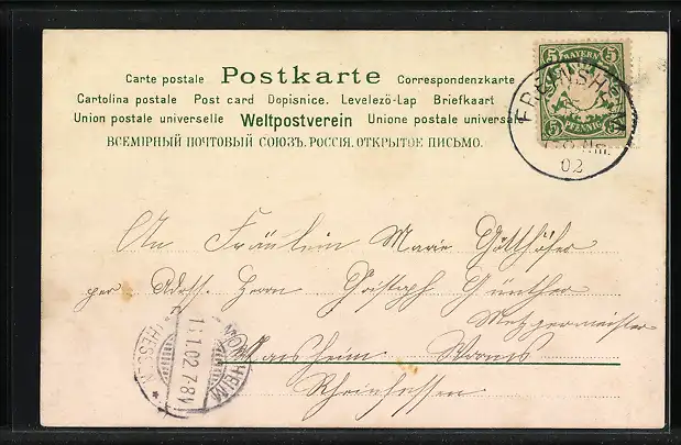 alte Ansichtskarte, gelaufen 1902, guter Zustand