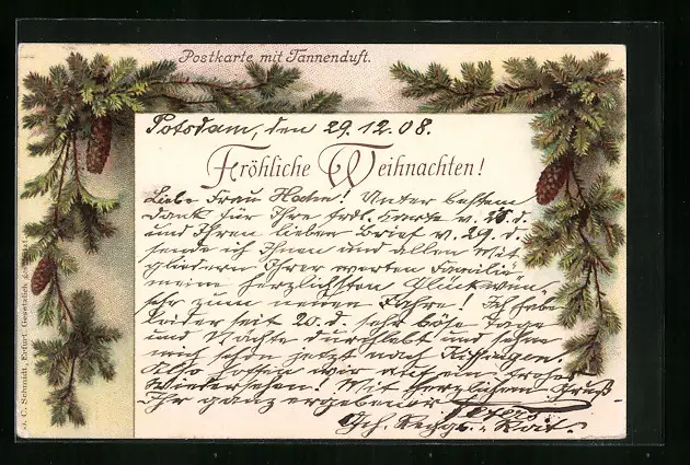 Duft-AK Tannengirlande mit Zapfen - Weihnachtsgruss mit Duft