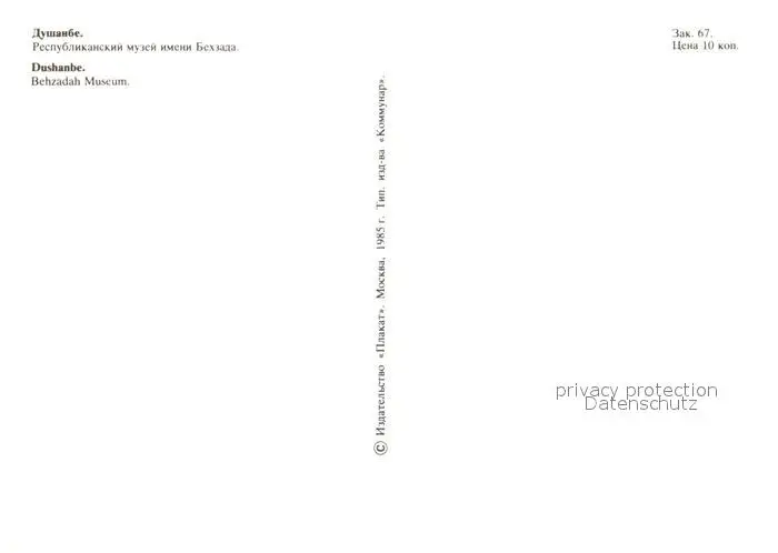 Duschanbe Museum Duschanbe postalisch nicht gelaufen nach 1965 Erhaltung siehe scans [NatalD47] NataID47