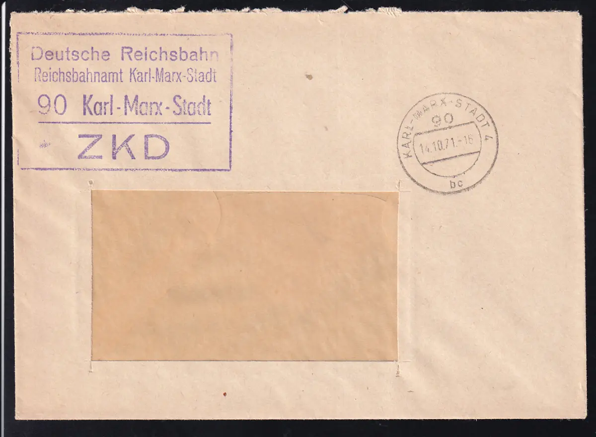 E4 deutsche Reichsbahn Reichsbahnamt Karl-Marx-Stadt 90 Karl-Marx-Stadt ZKD auf Fensterbrief