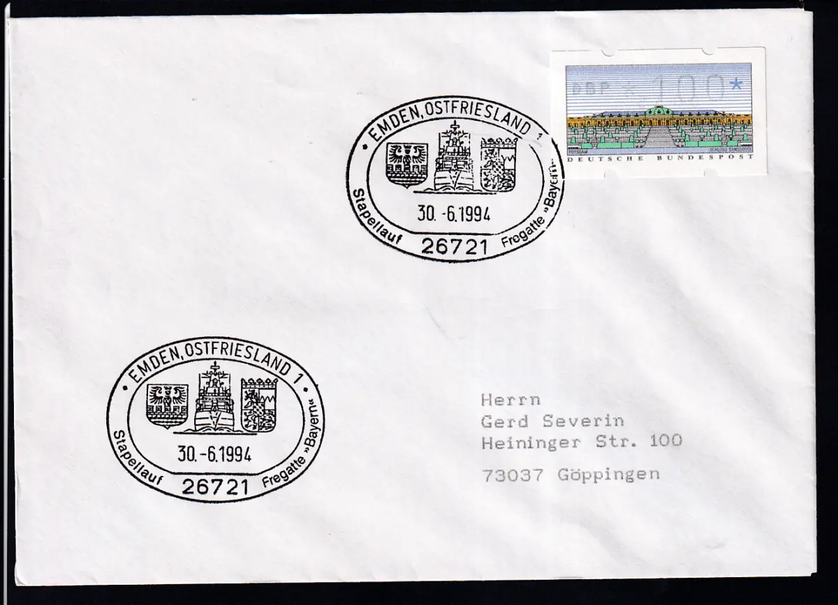 EMDEN, OSTFRIESLAND 1 26721 Stapellauf Fregatte "Bayern" 30.6.1994 auf Brief