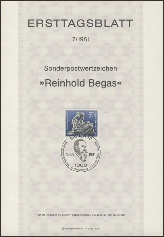 ETB 07/1981 Reinhold Begas, Bildhauer