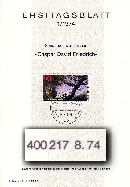 ETB 1/1974 C.D. Friedrich, Druckvermerk-Type I