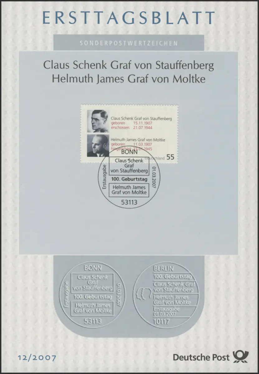 ETB 12/2007 Schenk, Graf von Stauffenberg, Graf von Moltke, Widerstandskämpfer