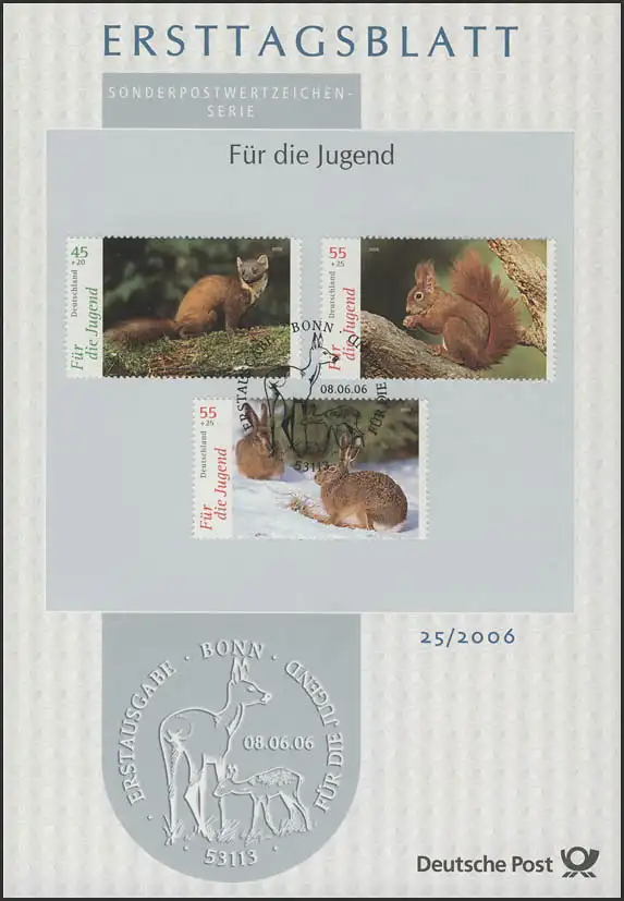ETB 25+25a/2006 Jugend Tiere, Eichhörnchen, Reh, Hase, Marder - Satz 2 ETB