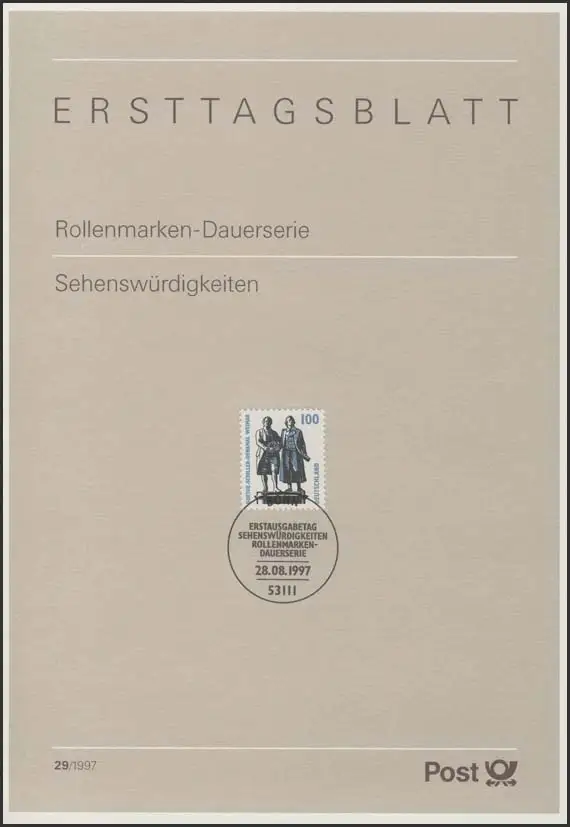 ETB 29/1997 SWK 100 Pf. Goethe-Schiller-Denkmal Weimar