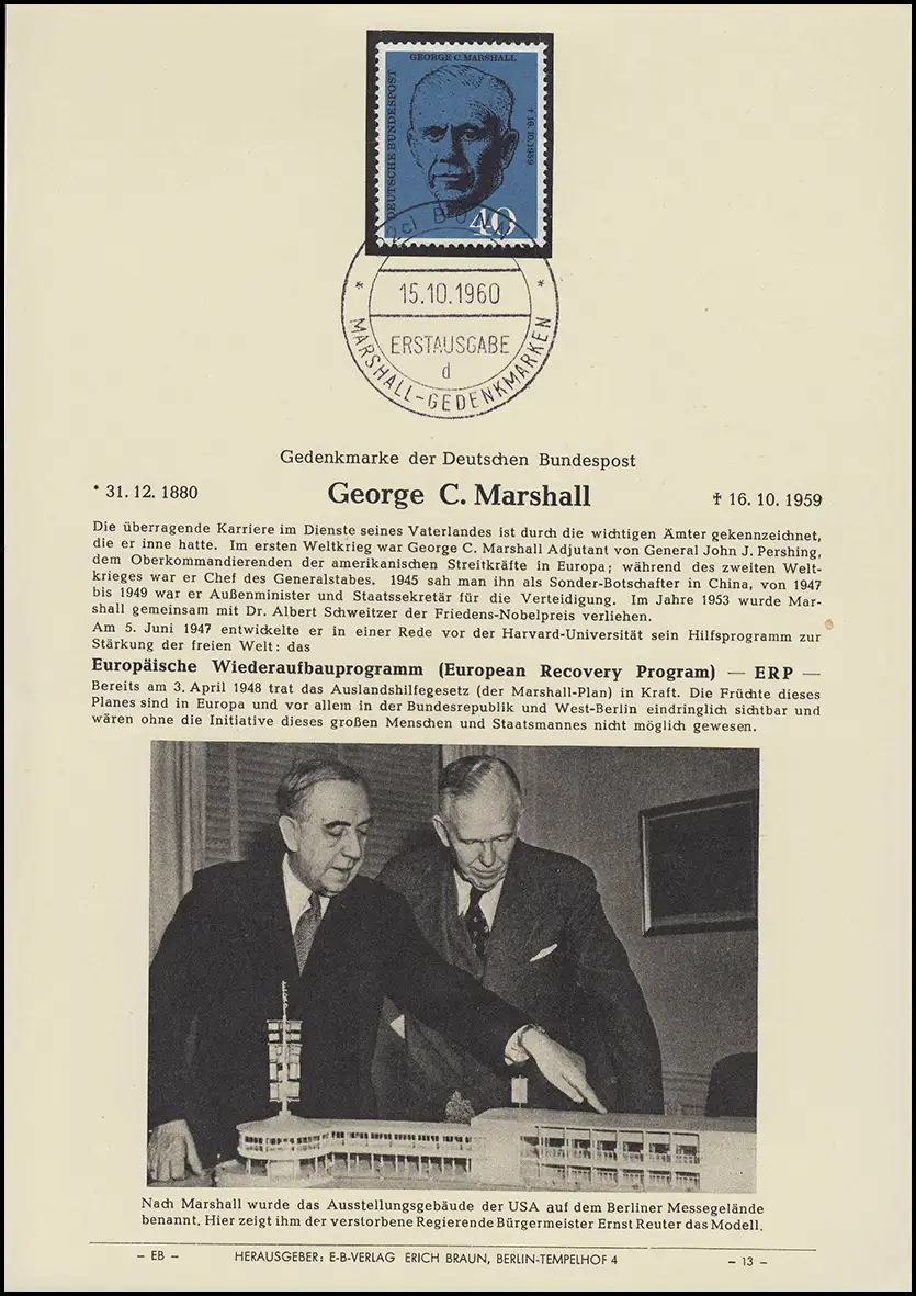 ETB E-B-Verlag Berlin: 344 Marshall - ERP, ESSt BONN 15.10.1960 (EB 13)