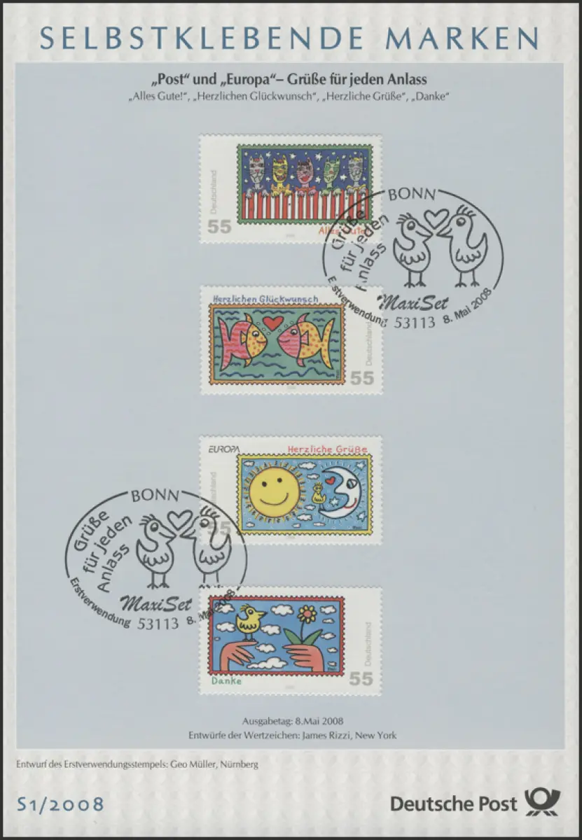 Weltkulturerbe UNESCO - Klosterinsel Reichenau, Eichstätt, Carl Spitzweg, Bundeskartellamt, Grüße für jeden Anlass - Zeichnungen von James Rizzi