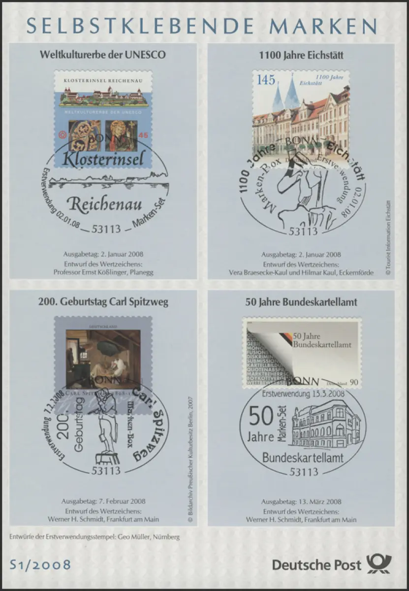ETB S1/2008 Selbstklebende Marken, Weltkultererbe UNESCO etc.