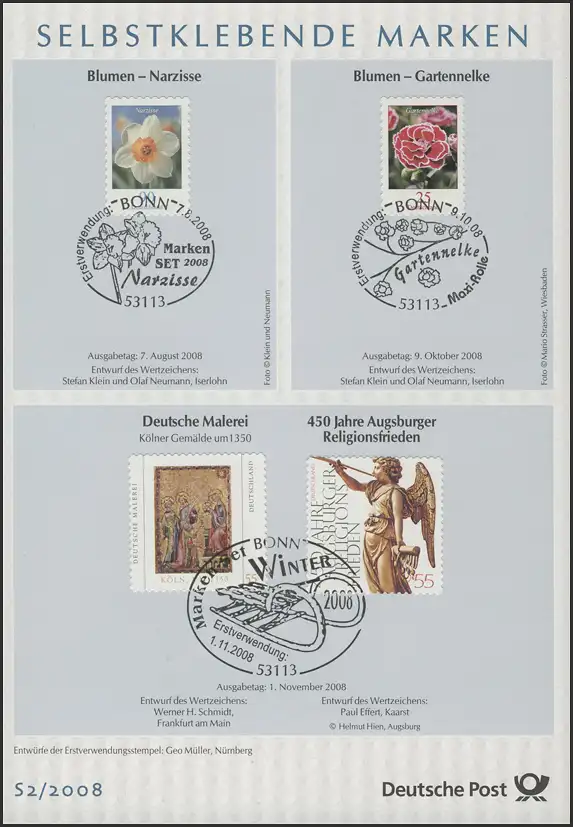 ETB S2/2008 Selbstklebende Marken, Blumen Narzisse etc.