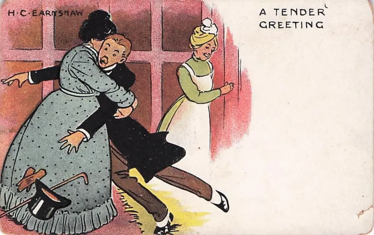 Earnshaw Comic - Husband Hugged by Large Wife Watched by Pretty -795204