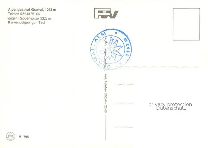 Eben_Achensee Alpengasthof Gramai gegen Rappenspitze Karwendelgebirge Eben Achensee postalisch nicht gelaufen nach 1965 Erhaltung siehe scans [FriedD77] Frierer