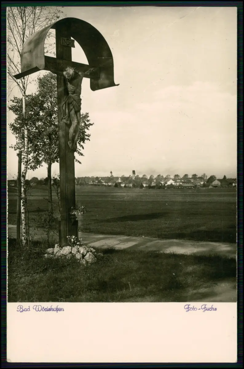 Echt Foto AK - Bad Wörishofen - Im Vordergrund ein Holzkruzifix mit INRI-Schild