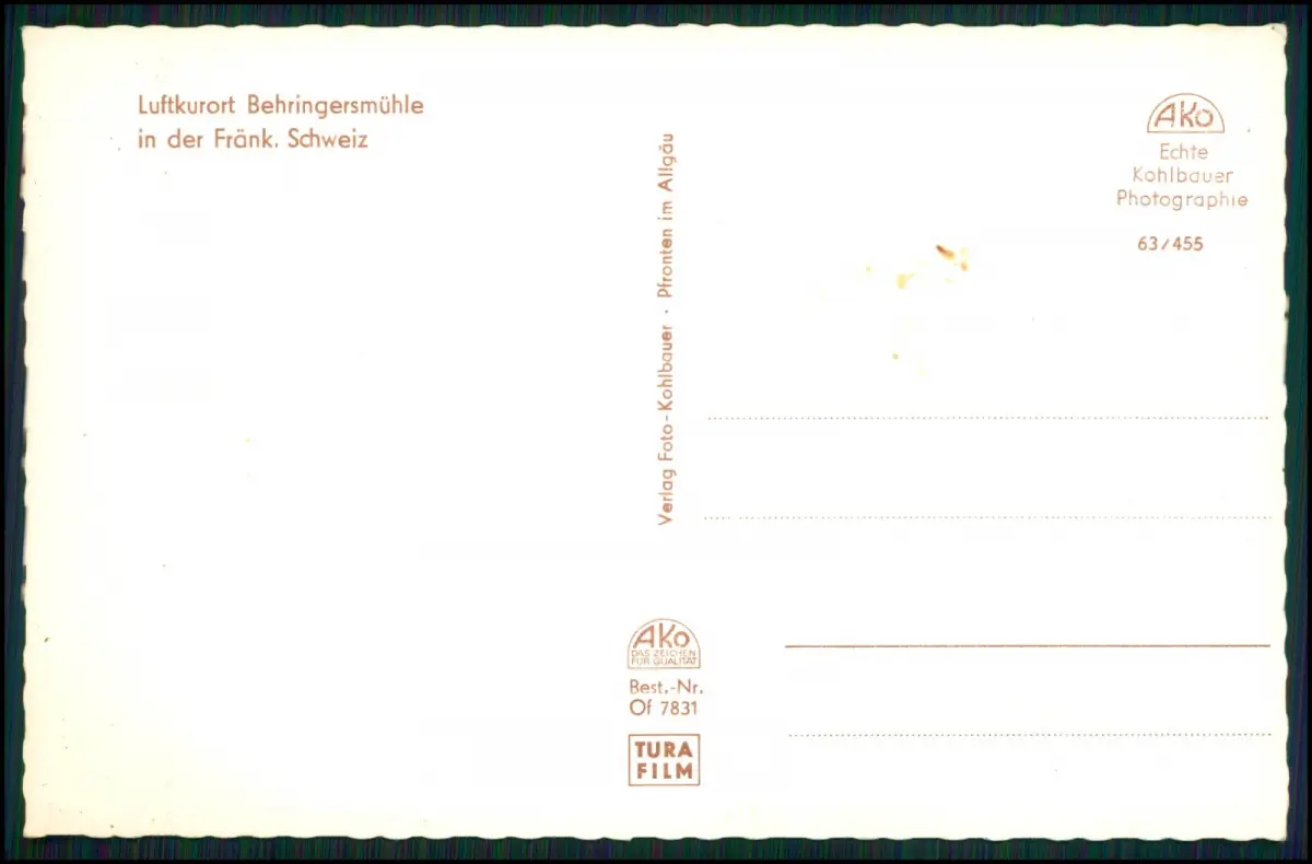 Rückseite: Unbeschrieben. Angaben zum Verlag: Foto-Kohlbauer, Pfronten im Allgäu. Seriennummer: 63/455 – Of 7831. Gedruckt auf echtem TURA-Film Fotopapier (hochwertige Ausführung, glänzend).