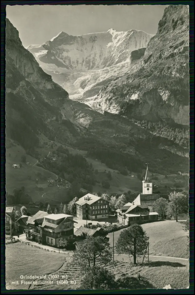 Echt Foto AK - Grindelwald Schweiz - mit Fiescherhörner Alpen Kirche Gletscher