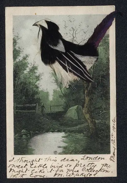 Echtfeder-AK Ein Vogel aus echten Federn in sumpfiger Szene