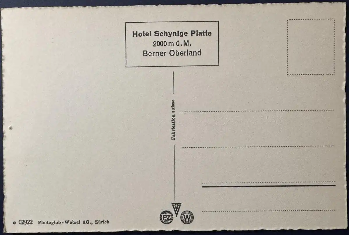 Titel: AK Schweiz, Bahnstation Schynige Platte, ungelaufen, Format 14 x 9 cm, Nadelloch oben mittig, ansonsten sehr gute Erhaltung.