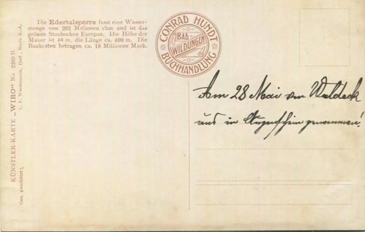 Edertalsperre - Künstlerkarte WIRO No. 2209B - C. F. Wiedemann