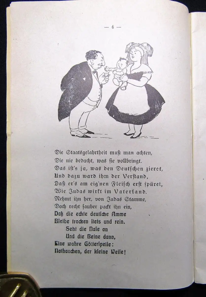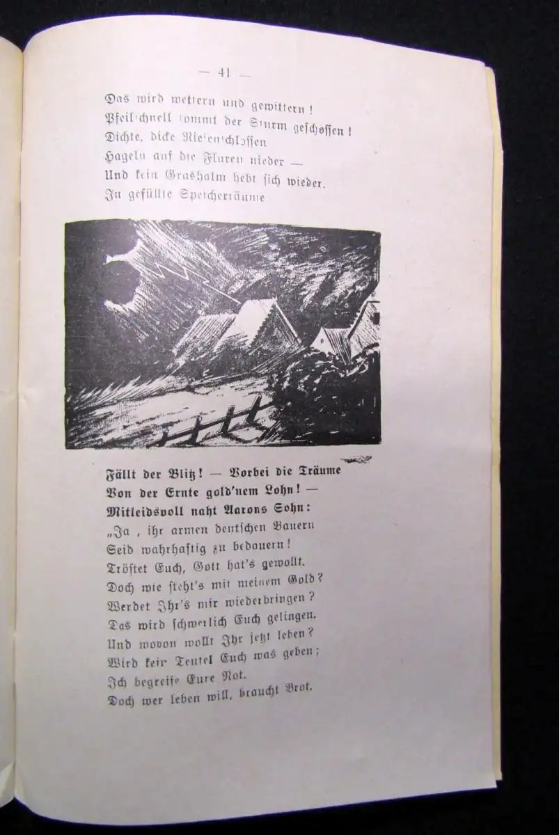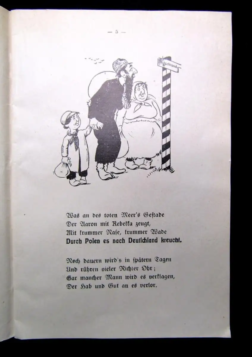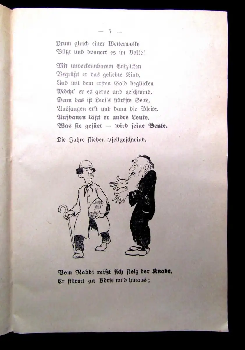 Seltene illustrierte Originalausgabe des antisemitischen Schmähgedichtes von Eduard Schwechten (1805-1912). Vollständige Ausgabe im Original Verlagseinband mit farbig bebildertem Deckeltitel.