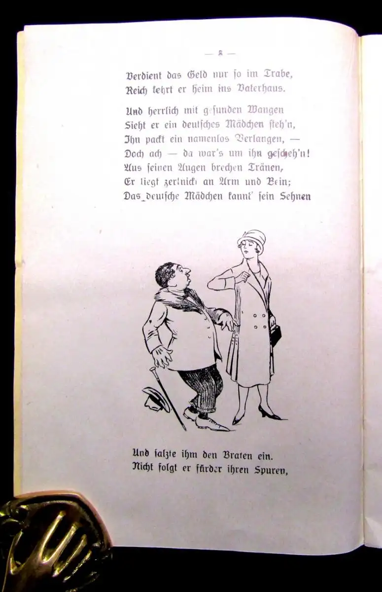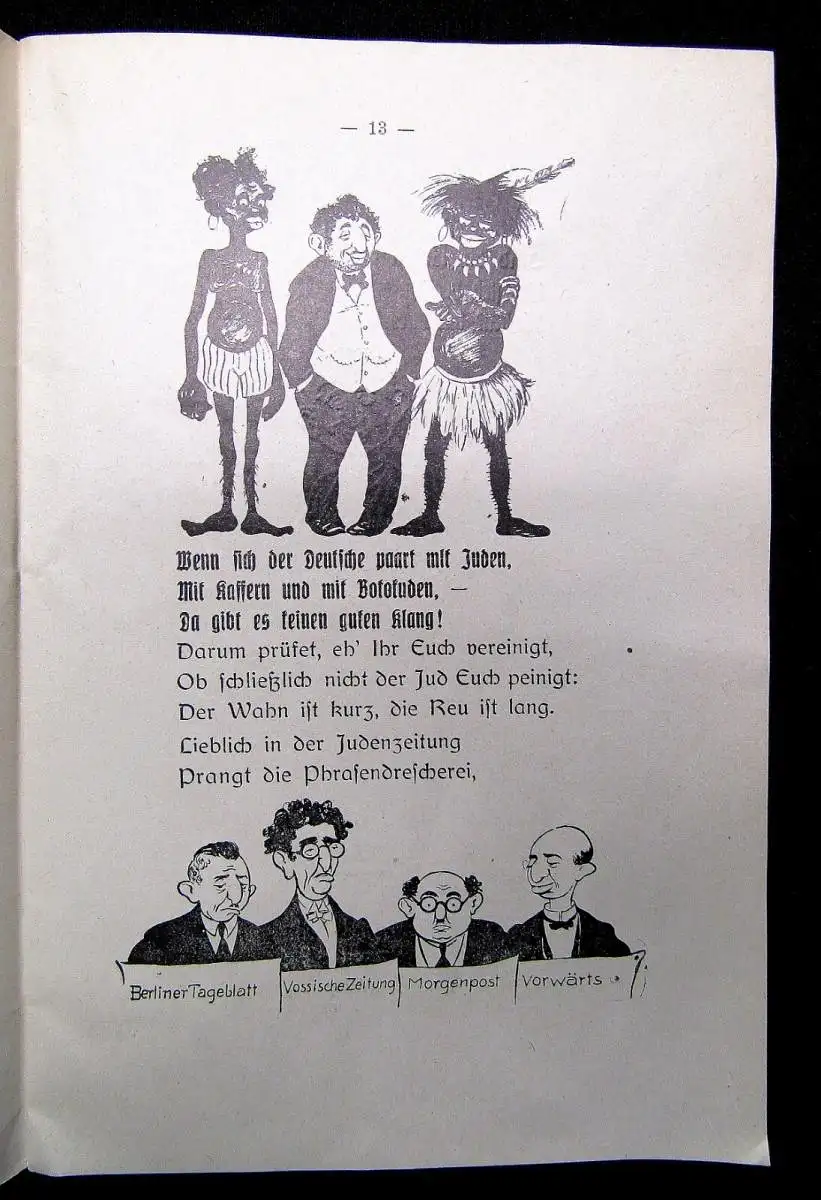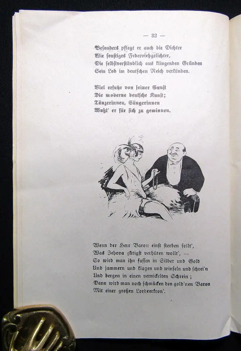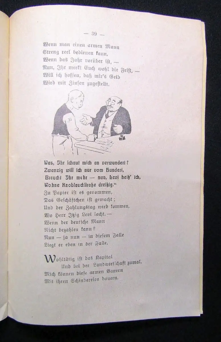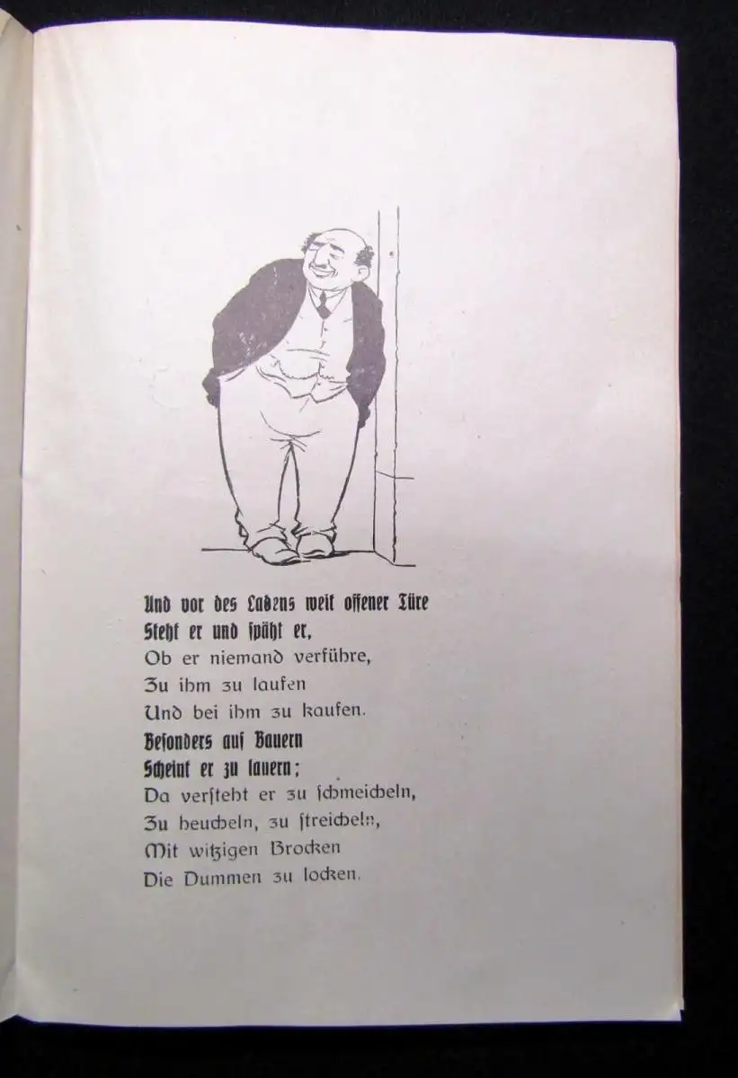 Seltene illustrierte Originalausgabe des antisemitischen Schmähgedichtes von Eduard Schwechten (1805-1912). Vollständige Ausgabe im Original Verlagseinband mit farbig bebildertem Deckeltitel.