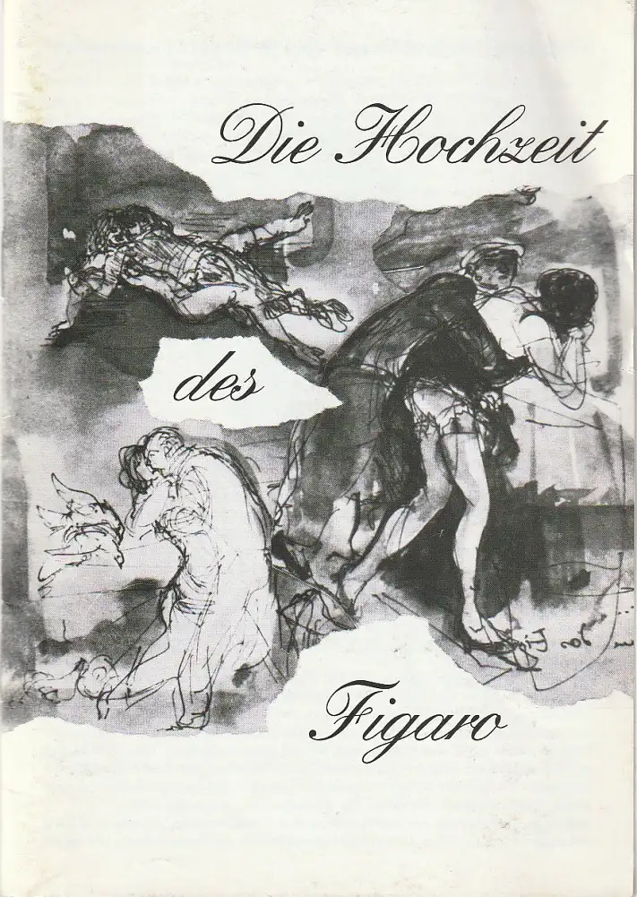 Le nozze di Figaro. Opera buffa in vier Akten. Musikalische Leitung: Mihai Valcu. Inszenierung: Leonore Haberkorn. Ausstattung: Gudrun Müller. Choreographie: Helga Hanke. Mitwirkende: Jürgen Appel / Andreas Scheel, Rosanne Duncombe Elliott, Anne Hagan Bentz, Leander de Marel, Anna Obreschkowa, Adrienne Passen, Marc Roald-Eliot, Robert Dundas / Steven Lach, u.a. - Theaterprogramm, Opernprogramm, Ballettprogramm, Musicalprogramm, Konzertprogramm, Theatermemorabilia, Programmhefte Sammlung, deutsche Theatergeschichte.
