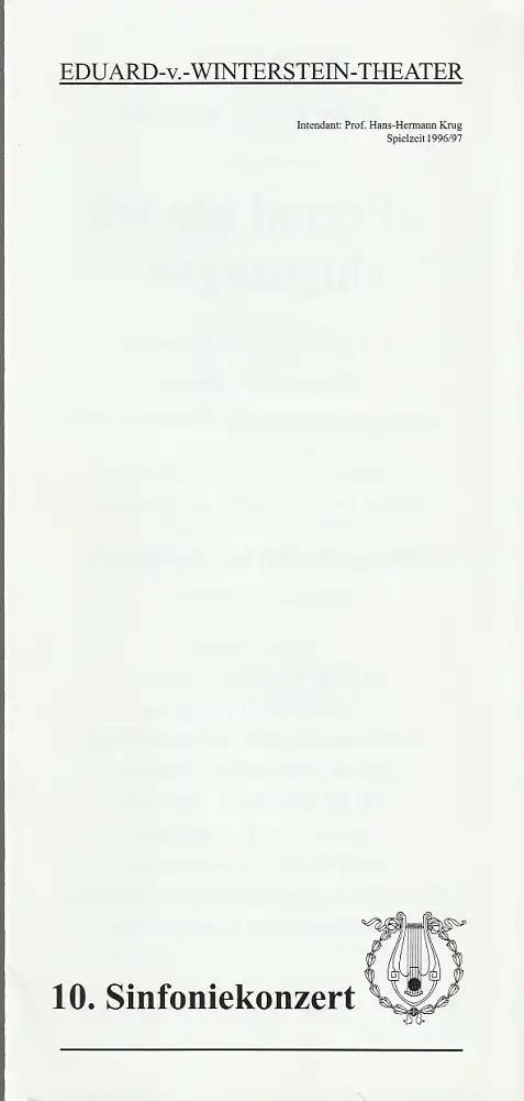 Titel: Programmheft 10. SINFONIEKONZERT FREMD BIN ICH EINGEZOGEN ORCHESTER DES EDUARD-VON-WINTERSTEIN-THEATERS 8. Mai 1997 Spielzeit 1996 / 97 Heft 20