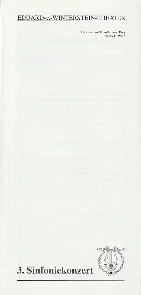 Eduard-von-Winterstein-Theater Annaberg, Hans-Hermann Krug, Michael Eccarius: Programmheft 3. SINFONIEKONZERT ORCHESTER DES EDUARD-VON-WINTERSTEIN-THEATERS MIT DEM ERZGEBIRGISCHEN SINFONIEORCHESTER AUE 16. + 18. November 1996 Spielzeit 1996 / 97 Heft