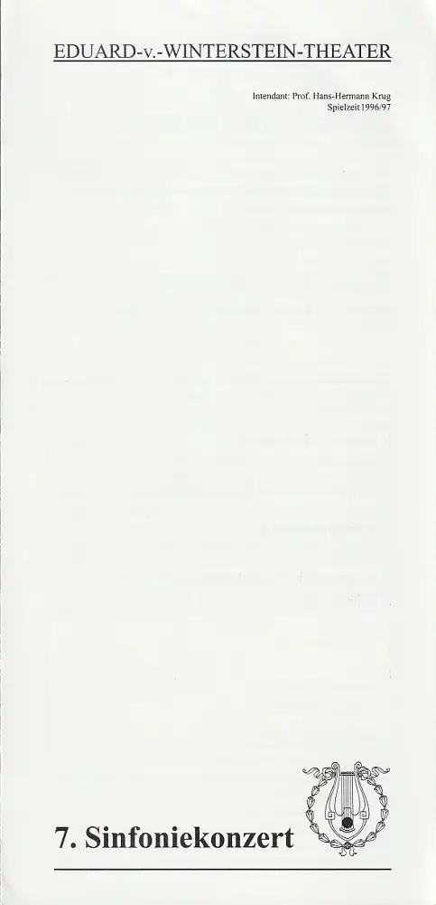 Eduard-von-Winterstein-Theater Annaberg, Hans-Hermann Krug, Michael Eccarius: Programmheft 7. SINFONIEKONZERT ORCHESTER DES EDUARD-VON-WINTERSTEIN-THEATERS MIT DEM ERZGEBIRGISCHEN SINFONIEORCHESTER AUE 15. + 17. März 1997 Spielzeit 1996 / 97 Heft 15.