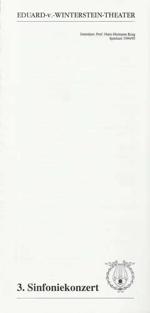 Titel: Programmheft 3. SINFONIEKONZERT ORCHESTER DES EDUARD-VON-WINTERSTEIN-THEATERS MIT DEM ERZGEBIRGISCHEN SINFONIEORCHESTER AUE 21. November 1994 Spielzeit 1994 / 95 Heft 7