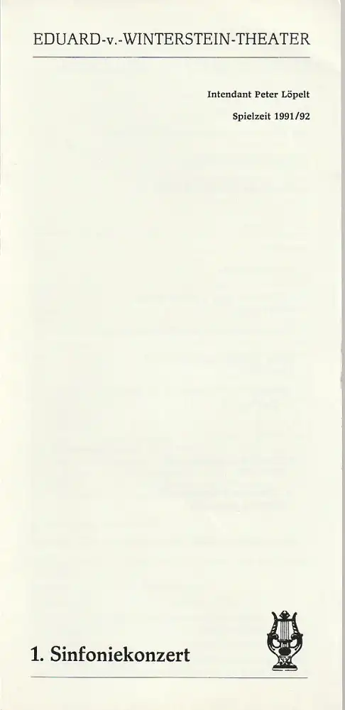 Titel: Programmheft 1. SINFONIEKONZERT 11. November 1991 ORCHESTER DES EDUARD-VON-WINTERSTEIN-THEATERS Spielzeit 1991 / 92 Heft 3