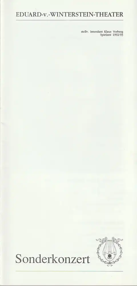 Eduard-von-Winterstein-Theater Annaberg, amt. Intendant Klaus Vorberg, Michael Eccarius: Programmheft SONDERKONZERT KLAVIERABEND MIT SIBYLLA JOEDICKE 26. April 1993 Eduard-von-Winterstein-Theater Spielzeit 1992 / 93 Heft 17.