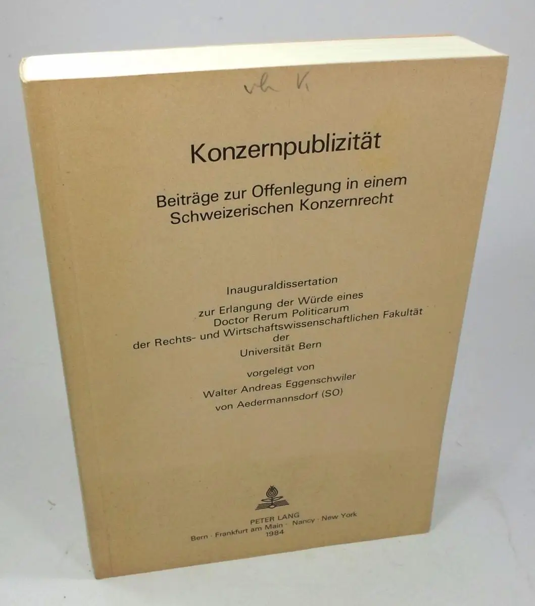 Eggenschwiler, Walter Andreas: Konzernpublizität. Beiträge zur Offenlegung in einem schweizerischen Konzernrecht. Dissertation.