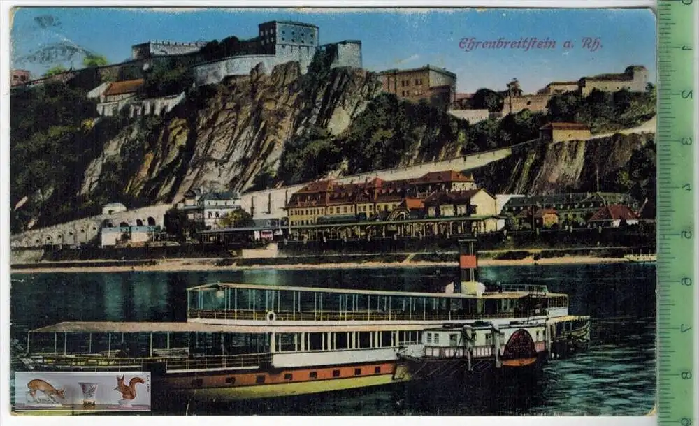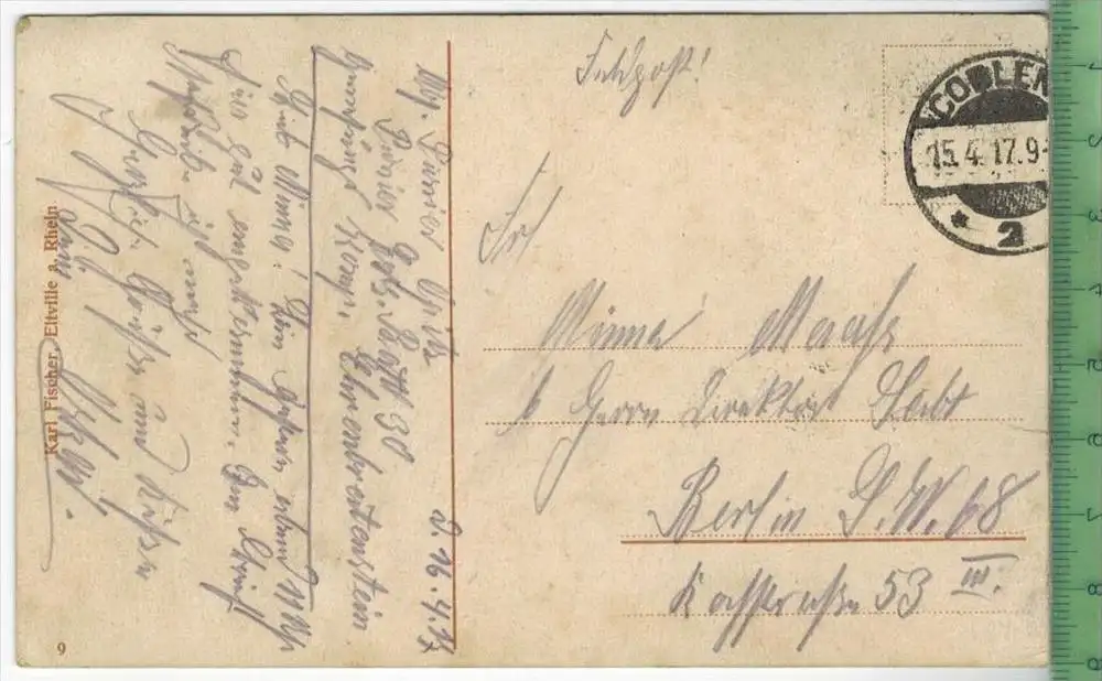 Ehrenbreitstein am Rhein, Raddampfer, - 1917 - Verlag: Karl Fischer, Eltville, FELD- POSTKARTE ohne Frankatur, mit Stempel COBLENZ 15.4.17, Erhaltung: I-II, Karte wird in Klarsichthülle verschickt.