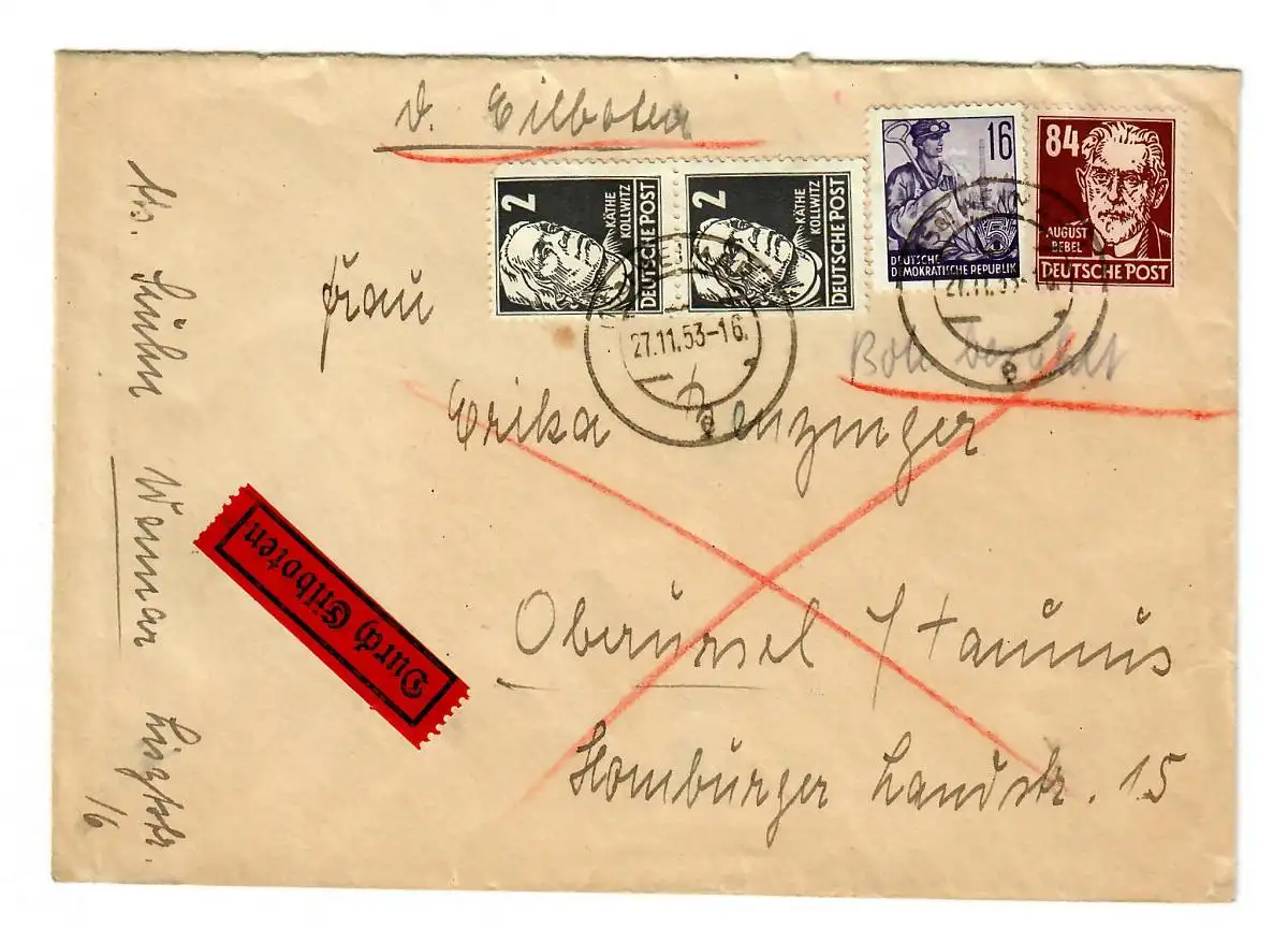 Eilboten Weimar 1953 nach Oberursel, rückseitige Typ-Bestimmung