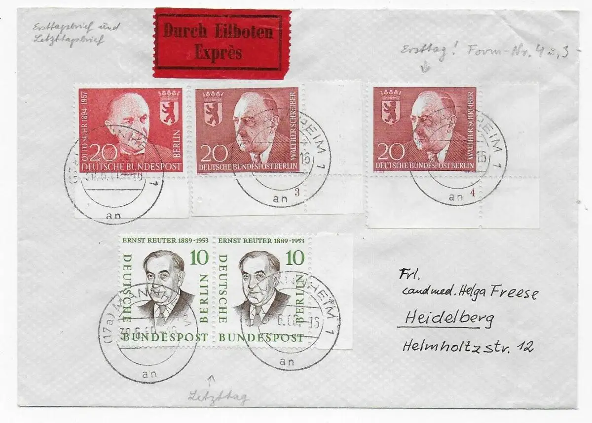 Eilboten aus Mannheim, 1960, Formnummer 3 und 4