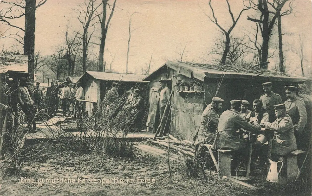 Eine gemütliche Kartenpartie im Felde Soldaten Postkarte AK 1916