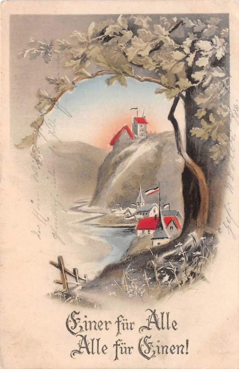 Einer für Alle Alle für Einen! Patriotika Postkarte mit Prägung AK 1916