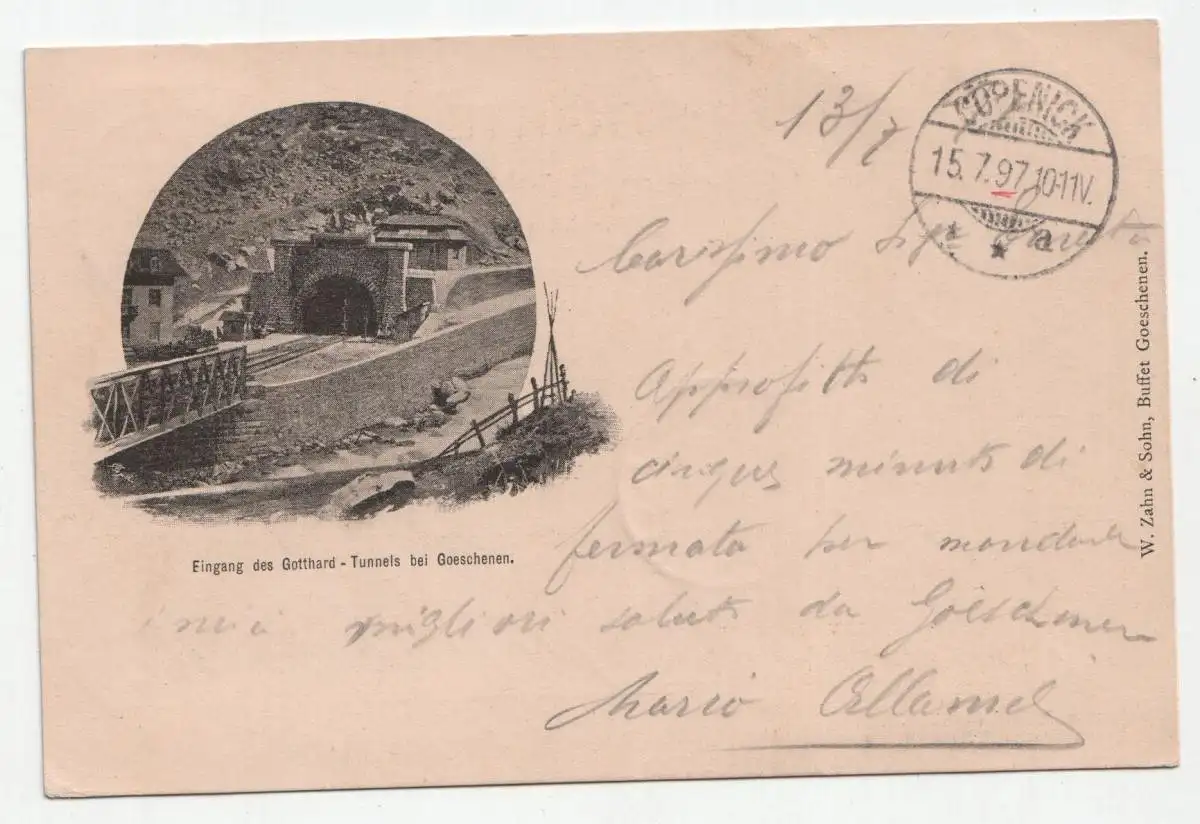 Eingang des Gotthard - Tunnels bei Goeschenen. jahr 1897
