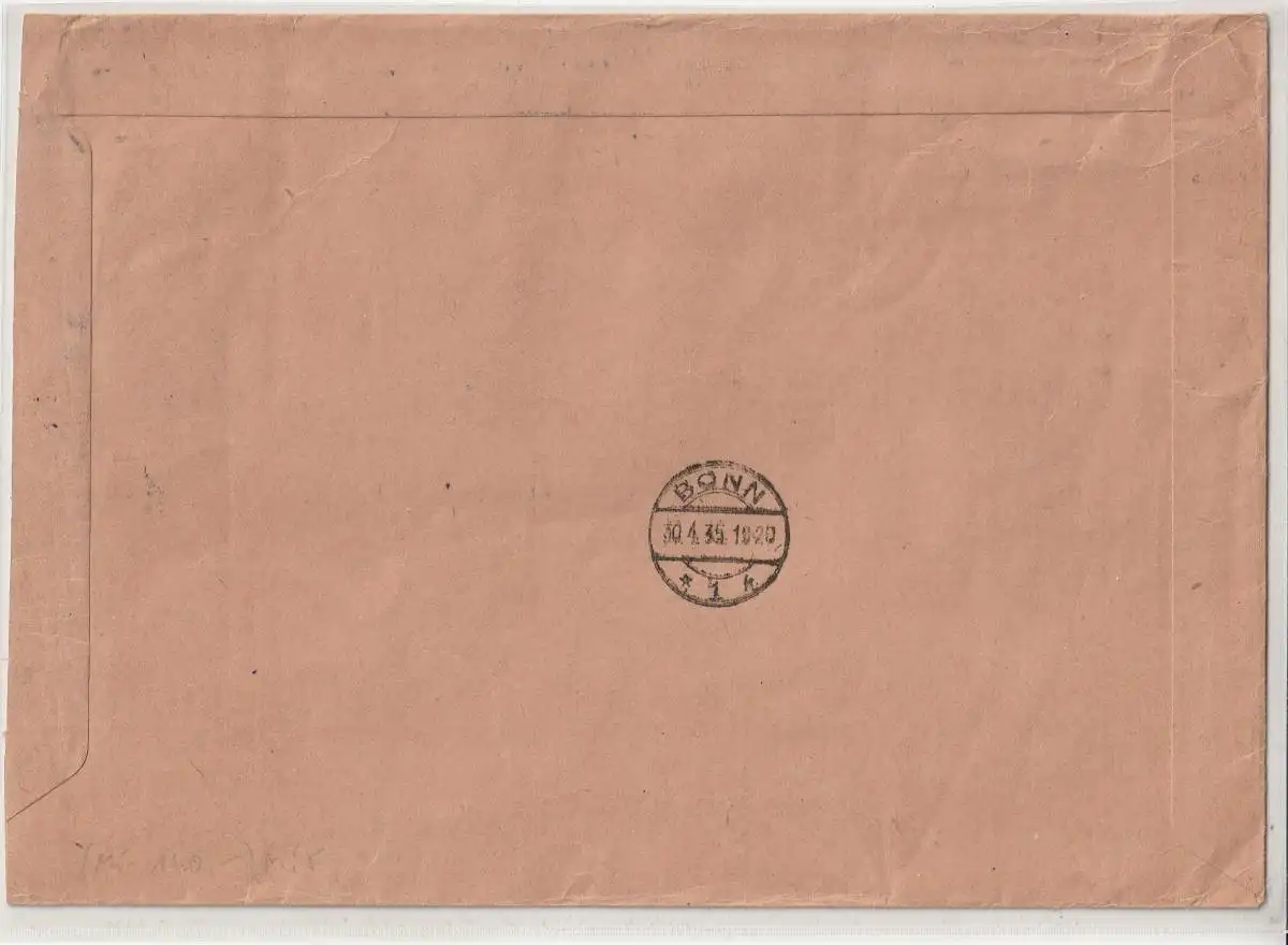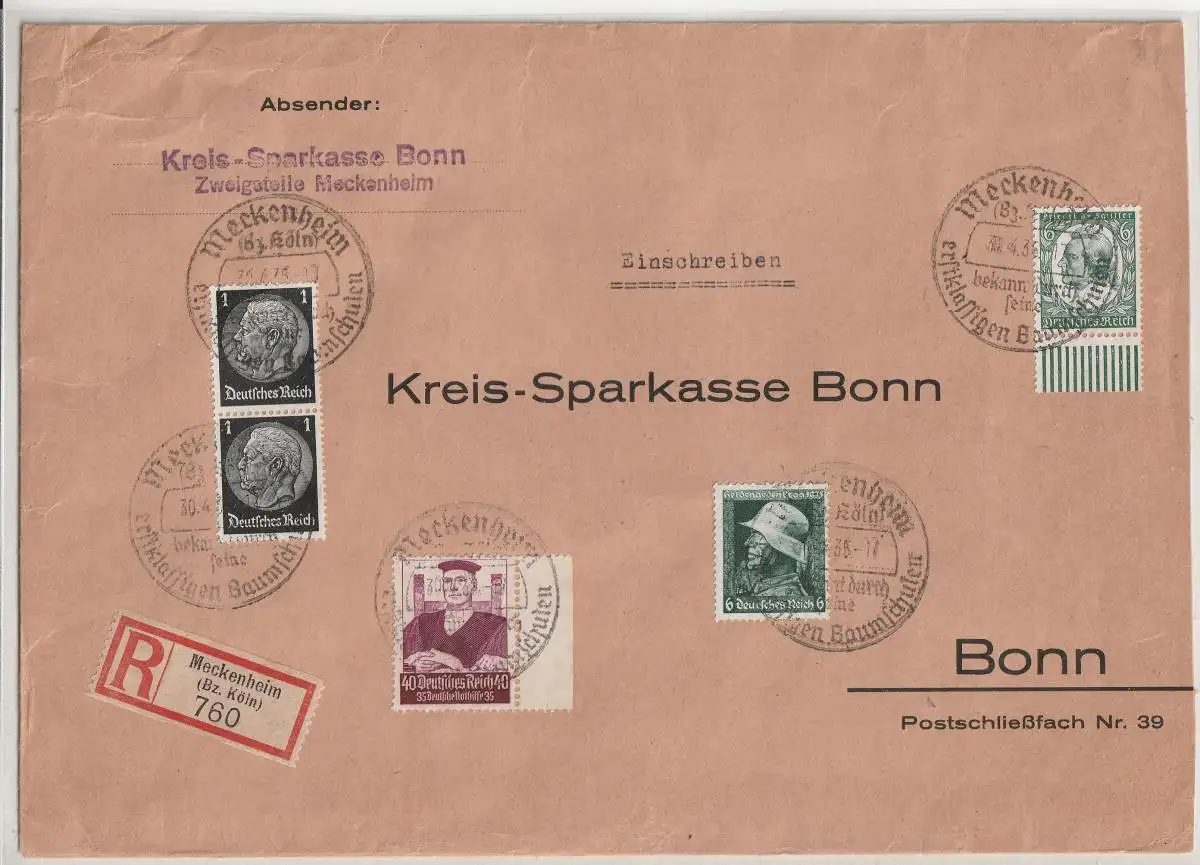 Einschreib-Bankbrief mit 40 Pfg. Berufsstände vom Seitenrand