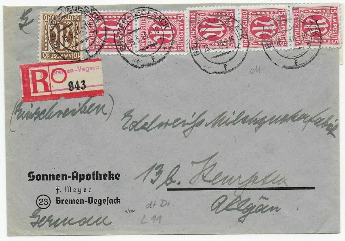 Einschreiben Bremen-Vegesack, 1946 nach Kempten