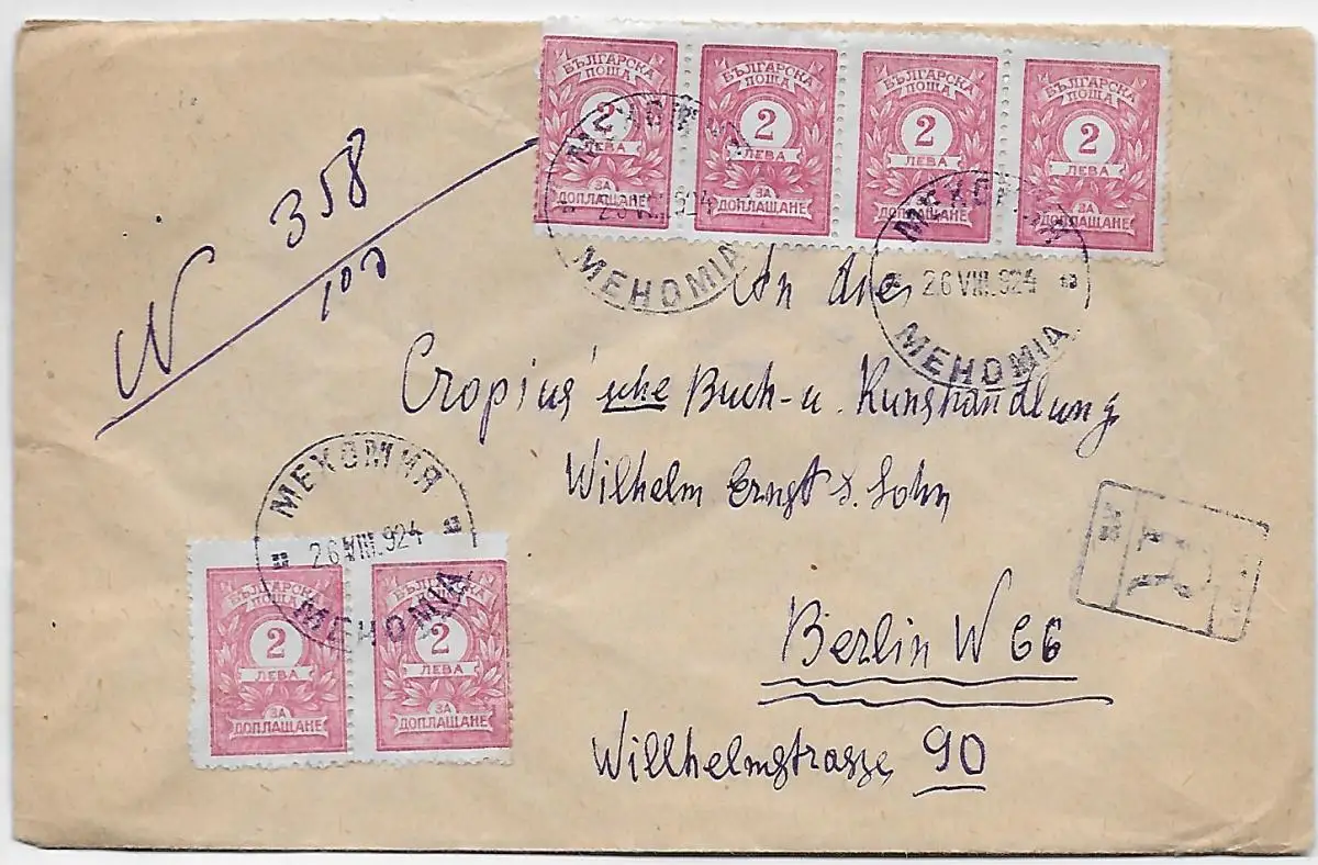 Einschreiben Bulgarien Mehomia 1924 nach Berlin, MeF