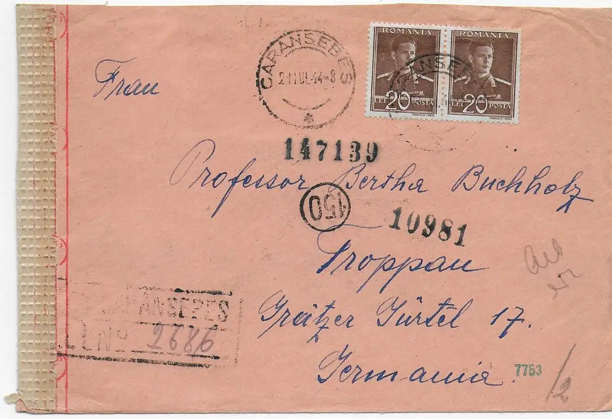 Einschreiben Caransebes 1944 mit OKW und rum. Zensur nach Troppau