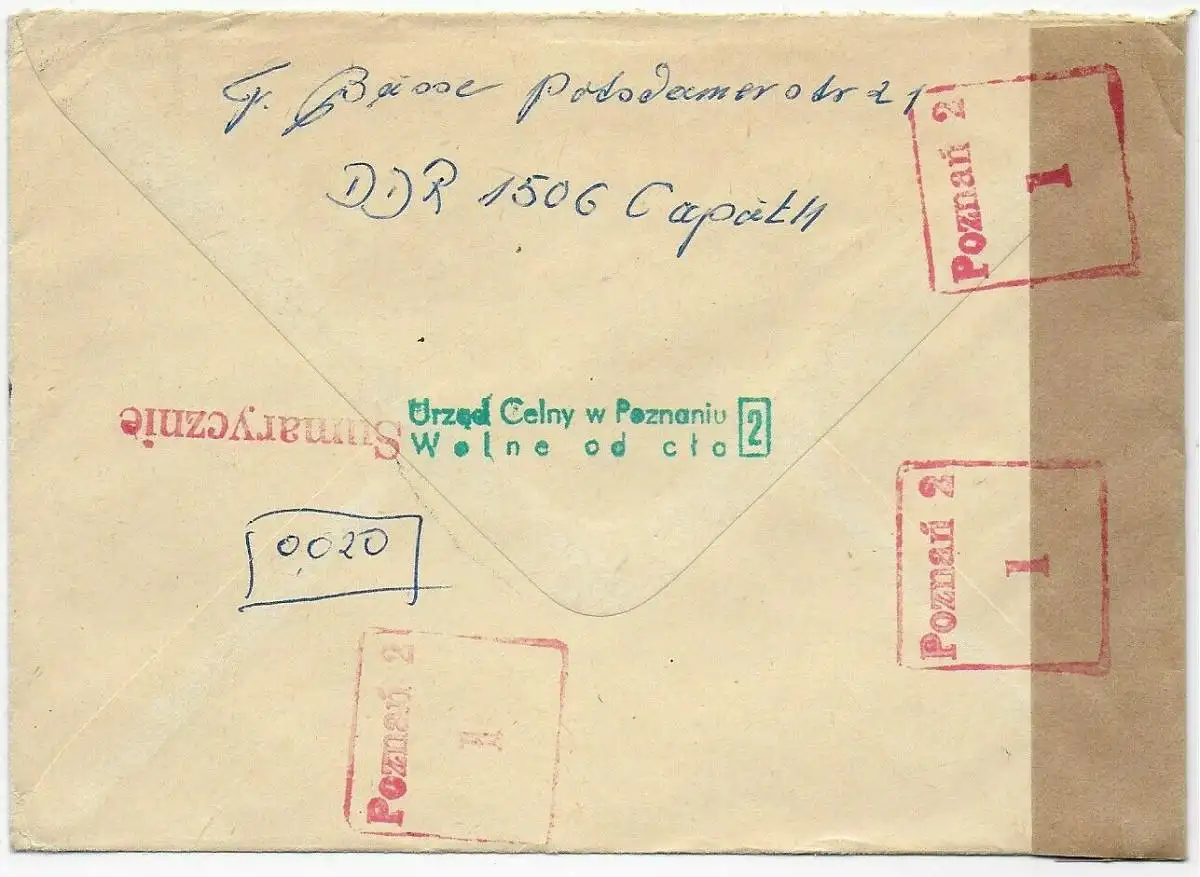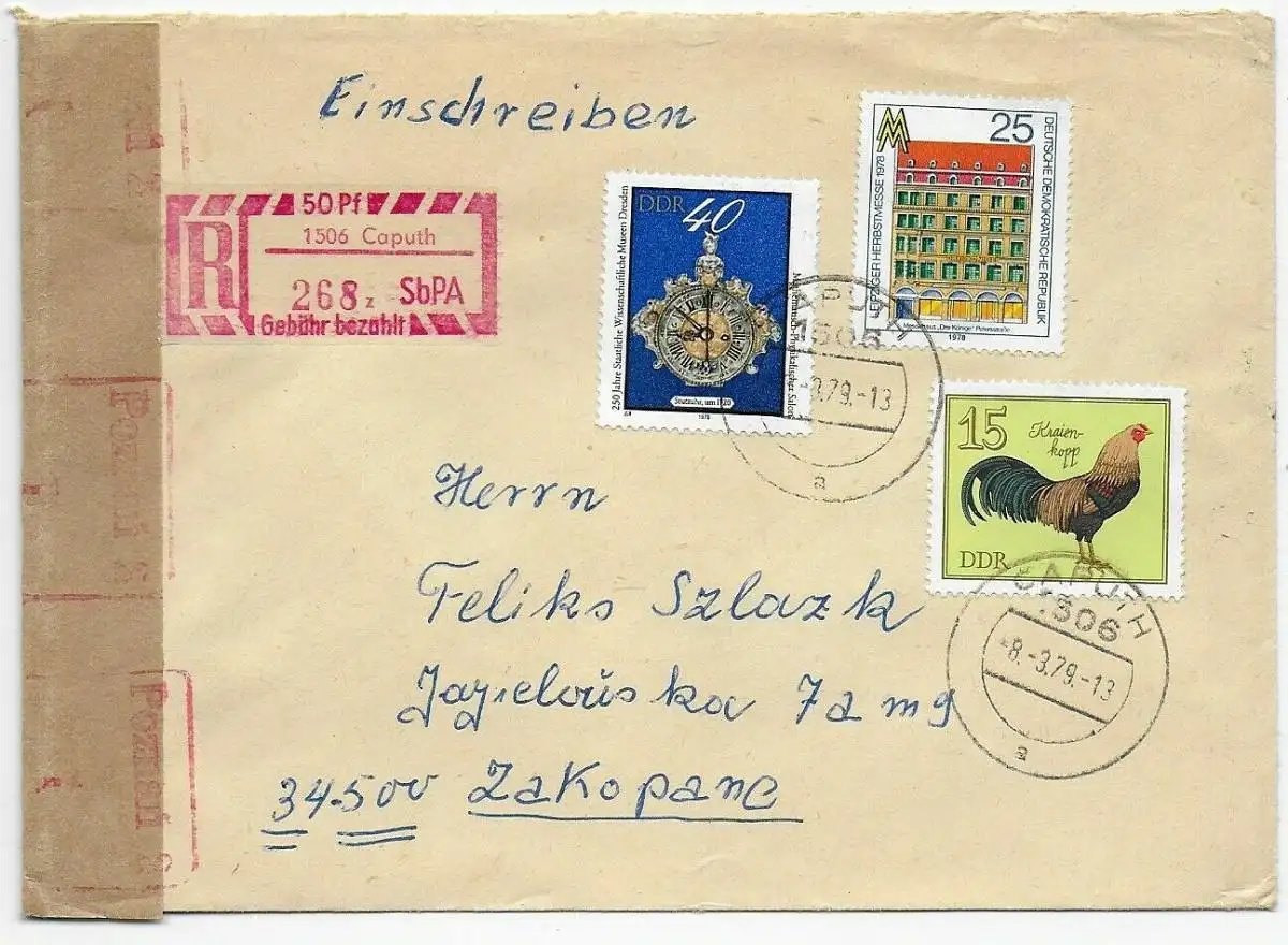 Einschreiben DDR Caputh 1979 nach Polen: Zollkontrolle Poznan