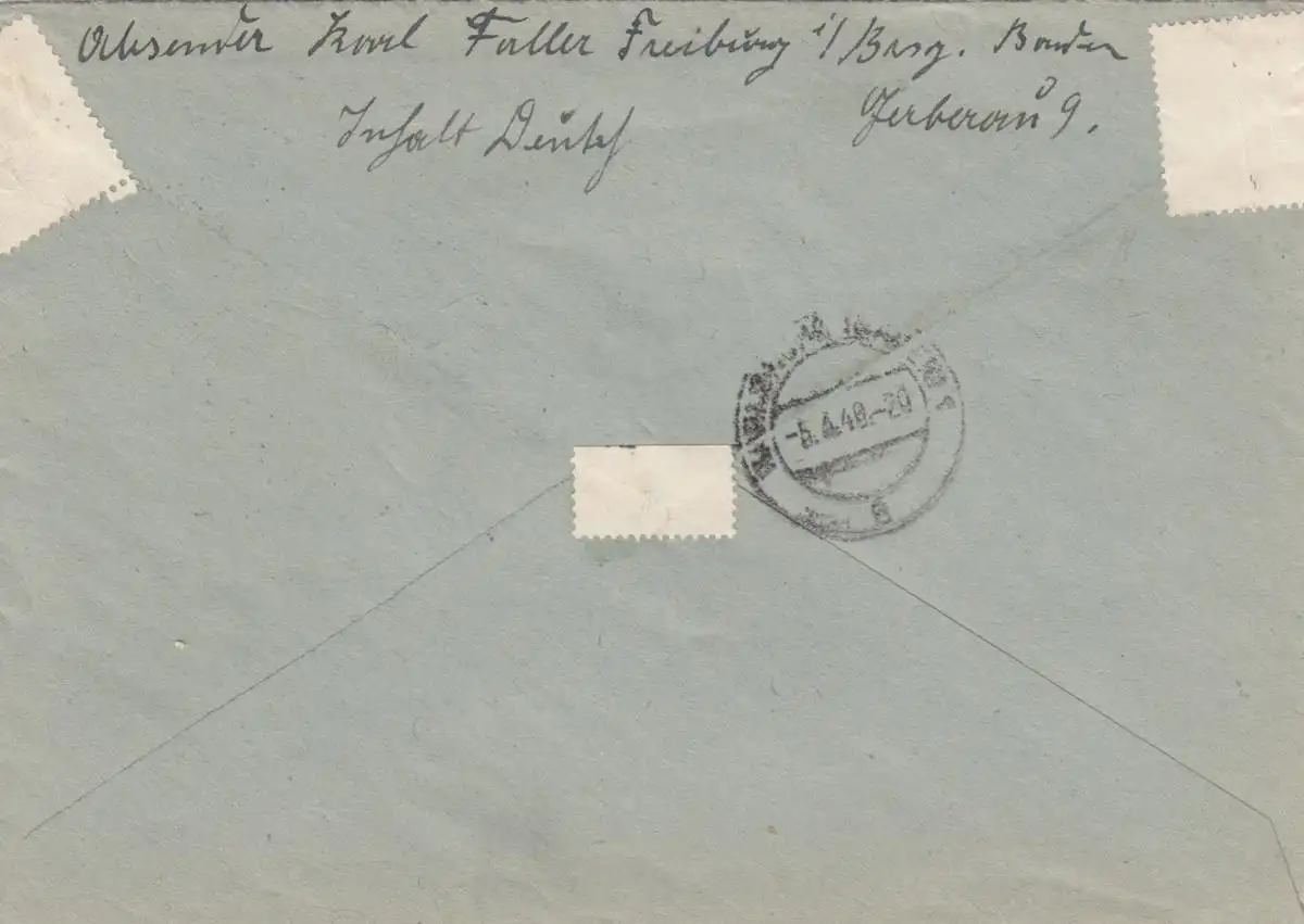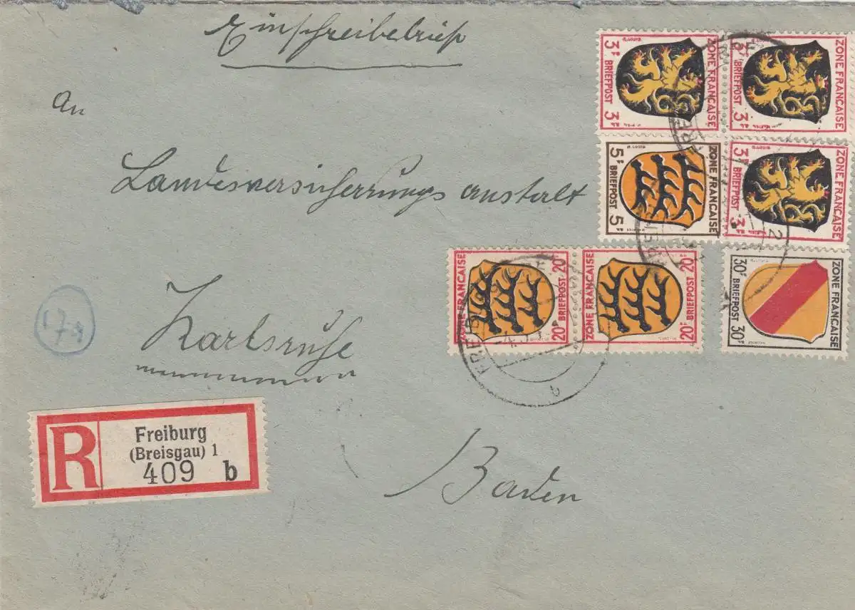 Einschreiben Freiburg 1948 nach Karlsruhe