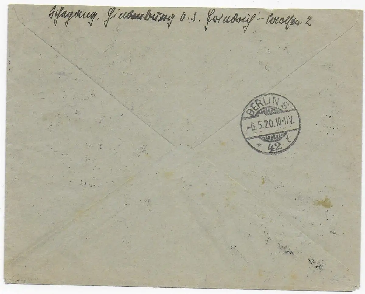 Einschreiben Hindenburg Oberschlesien nach Berlin, 1920, MiNr. 1-9