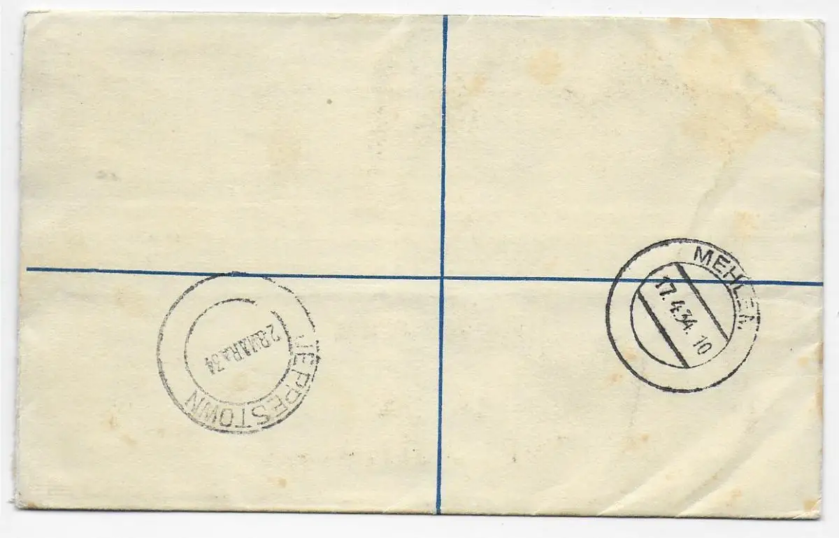 Einschreiben Jeppestown 1934 nach Mehlem