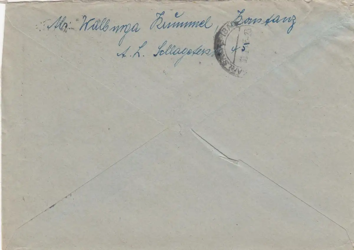 Einschreiben Konstanz 1943 nach Karlsruhe