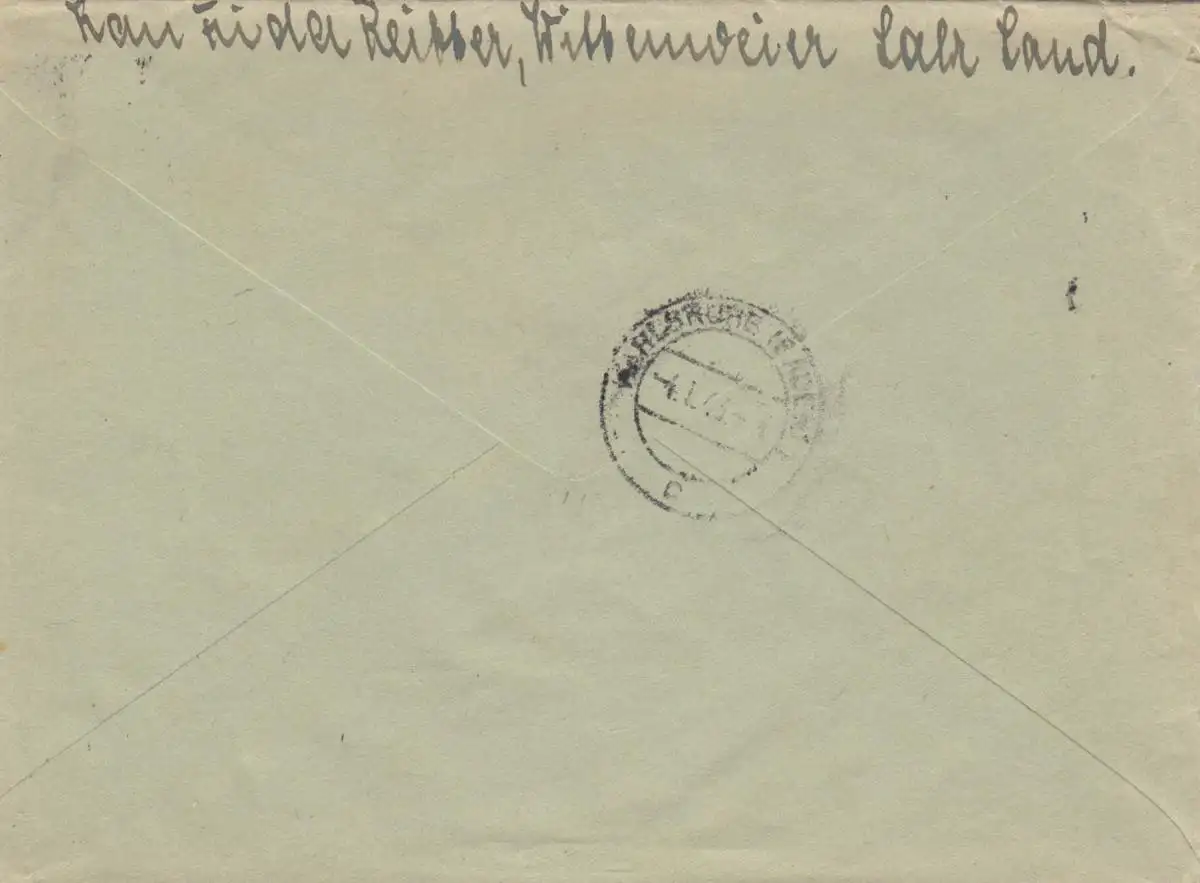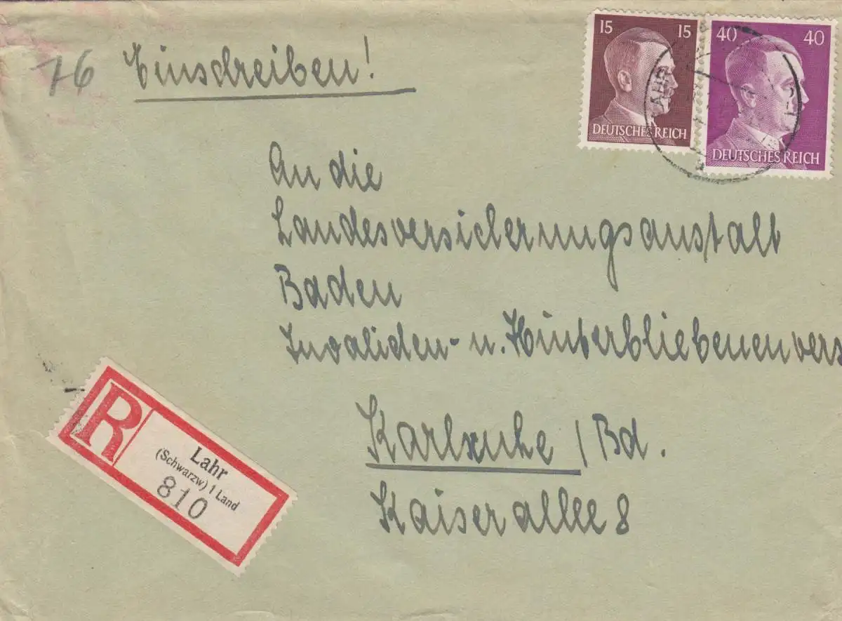 Einschreiben Lahr nach Karlsruhe 1943