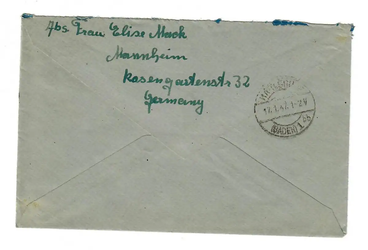 Einschreiben Mannheim 1947 mit Maschinenhalbstempel nach Karlsruhe