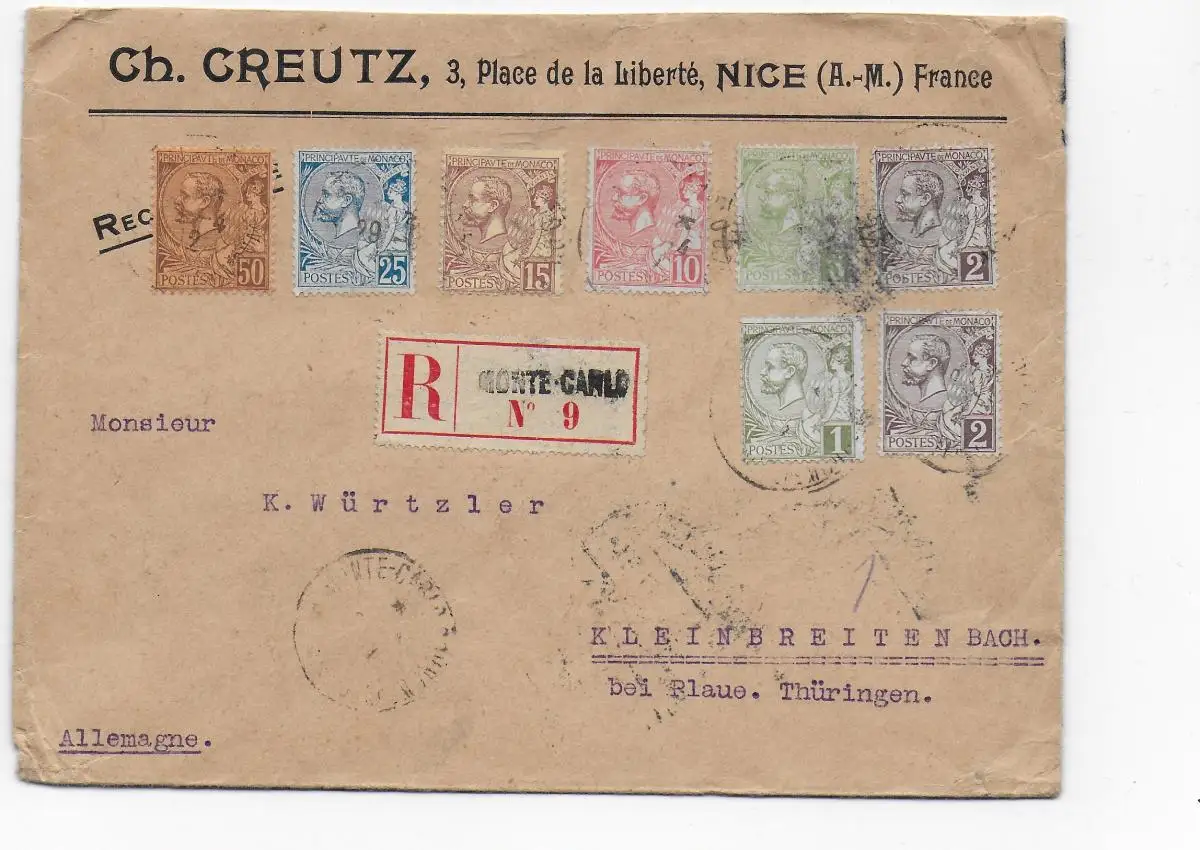 Einschreiben Monte Carlo nach Kleinbreitenbach, Philatelistische Vignette